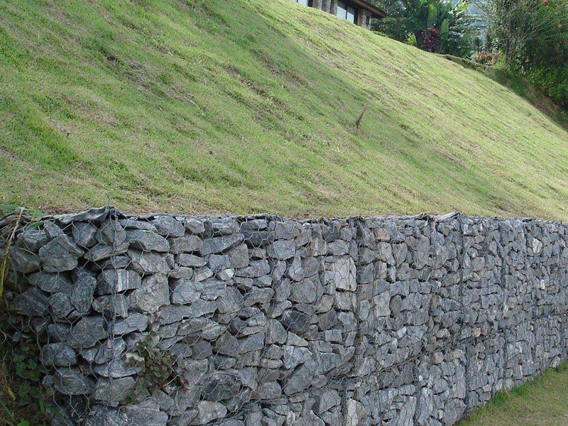(4)鋅-5%鋁-混合稀土合金鋼絲包塑:在鋅-5%鋁-混合稀土合金鋼絲的外表包一層PVC維護層,再織形成各種規格的六角網。這層PVC維護層將會大大增加在高污染環境中的維護,而且經過不一樣色彩的挑選,使其能和周圍環境交融。