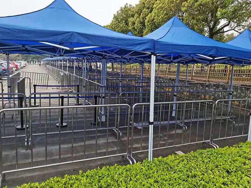 采用不銹鋼鋼管經電阻焊焊接而成,主要用于商場,主要大型活動,臨時活動,大型展覽,汽車巡演,臨時隔離,臨時圍界使用。